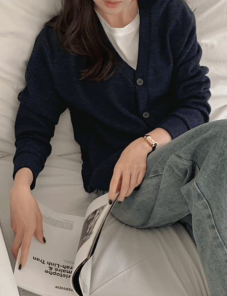 테로드 配色 단가라 케이블 圓領 開襟外套 86085