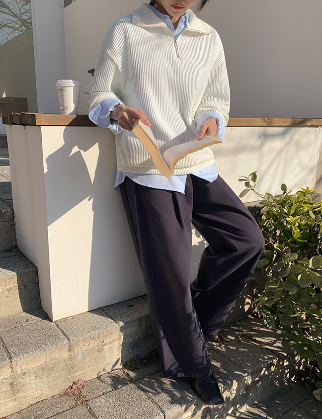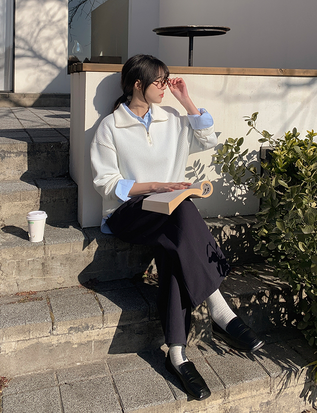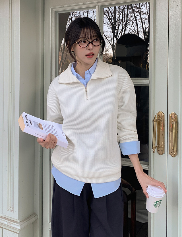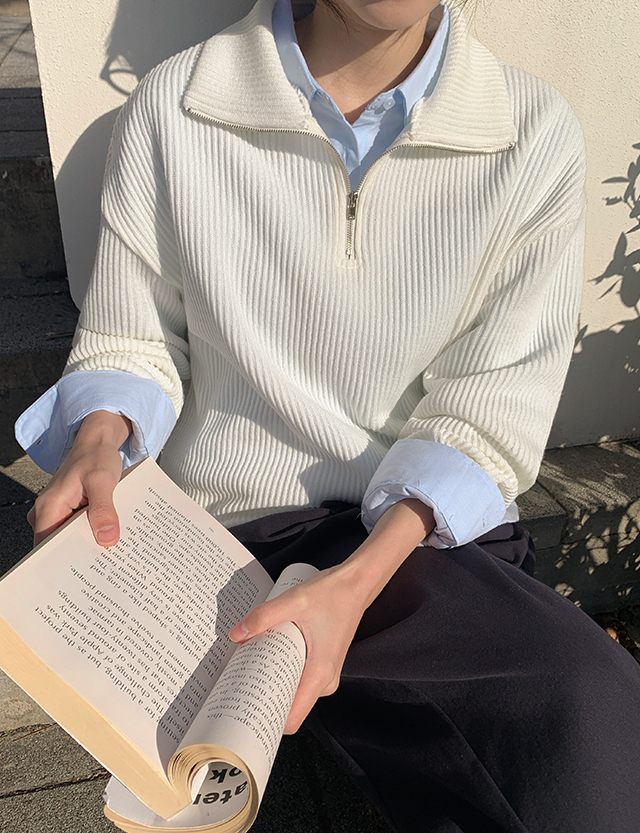 [엠디픽] 토피 羅紋 半拉鏈 針織 86026