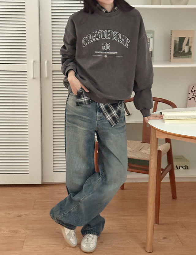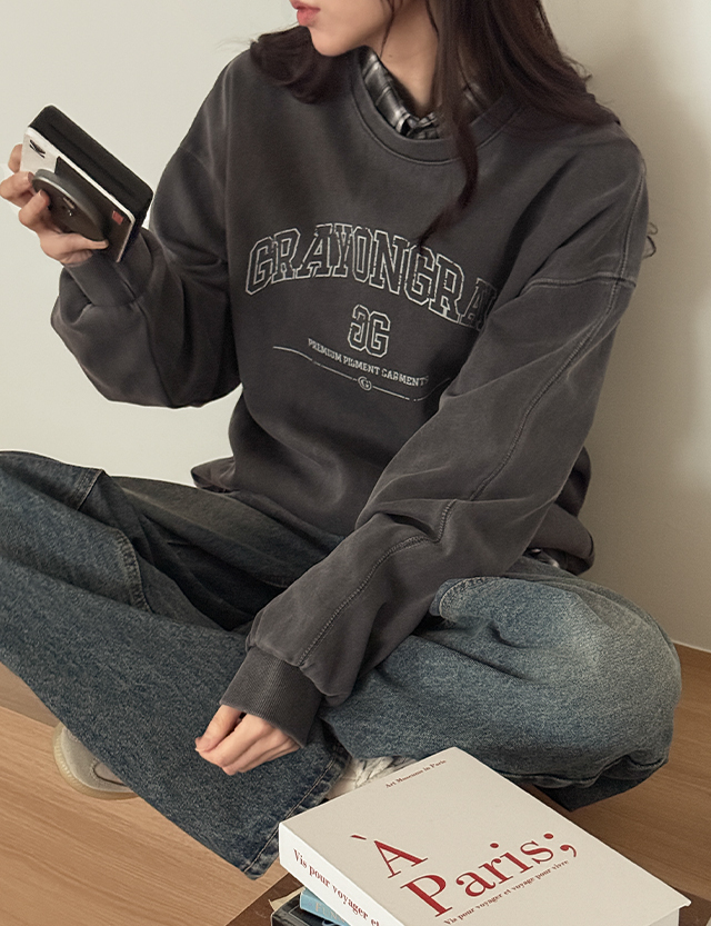에펠 寬鬆 피그먼트 字母印花 運動衫 86010