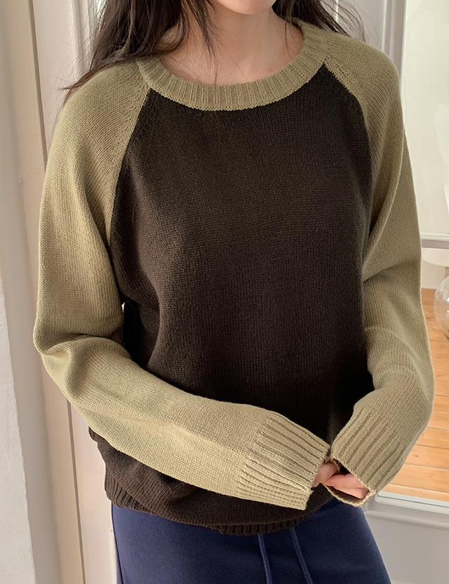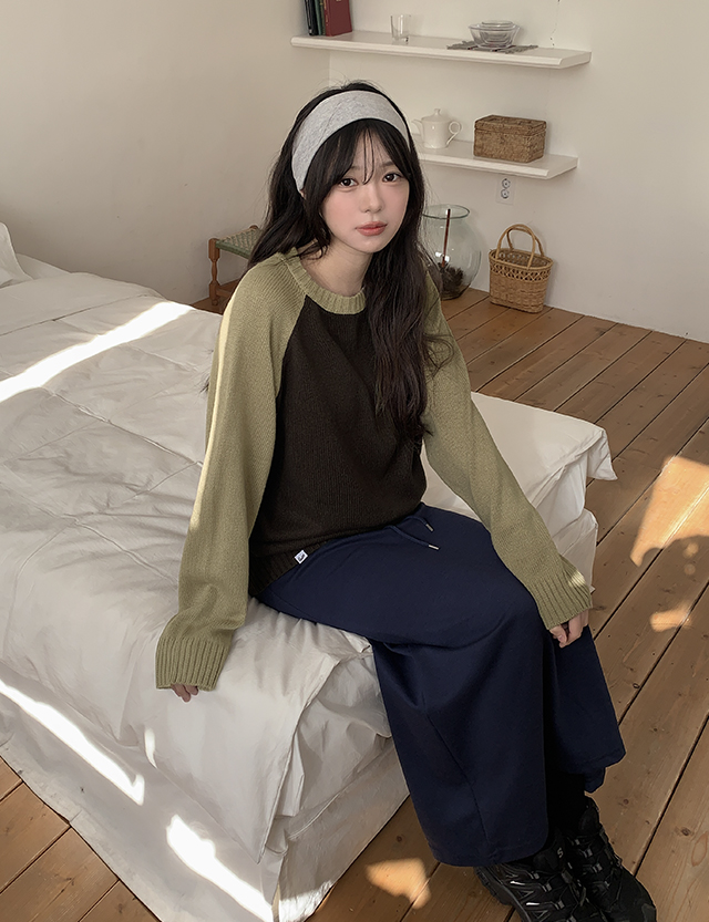 오벨 寬鬆 標籤 配色 插肩 針織 86134