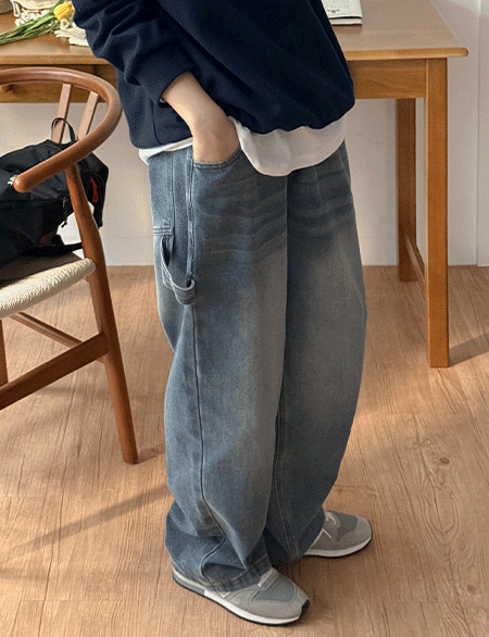 코브드 鬆緊腰 寬 工裝褲 牛仔 褲 86157