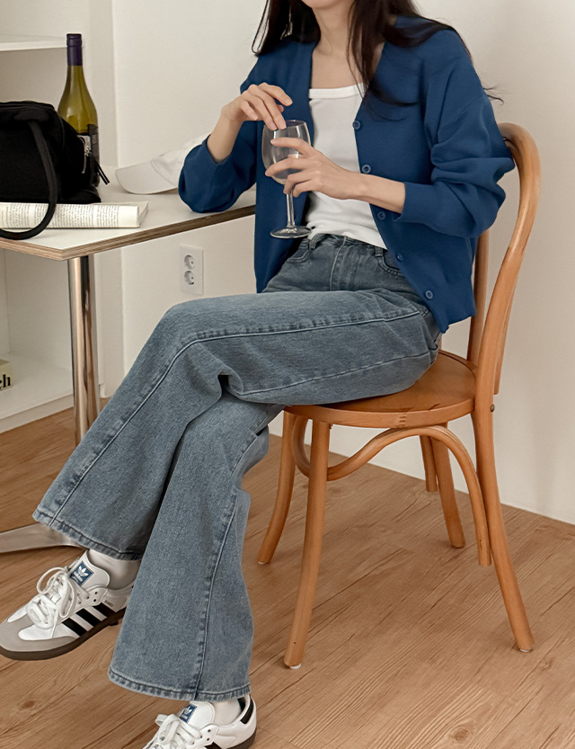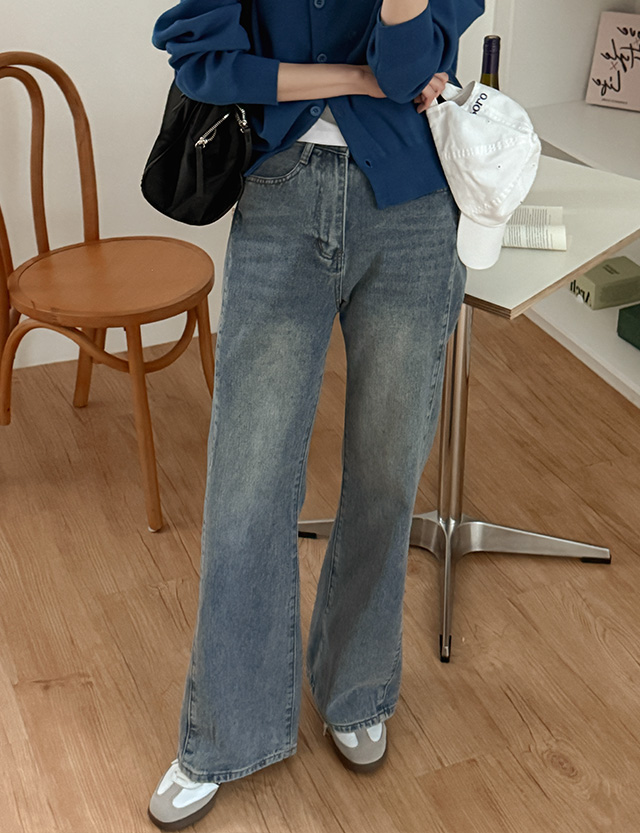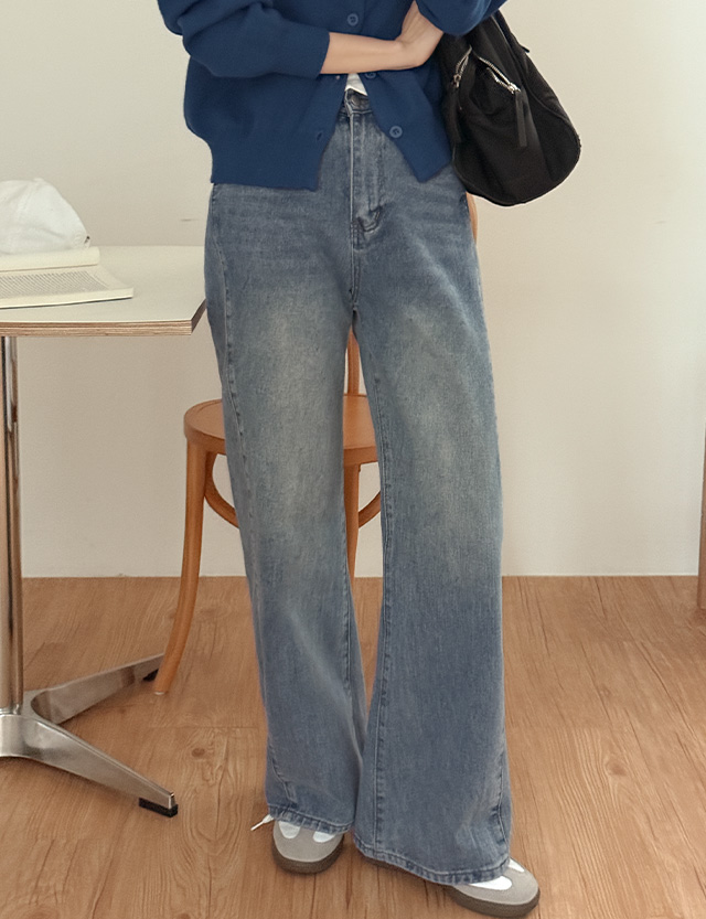[2가지기장] 플리 사이드 절개 세미 寬 牛仔 褲 86033