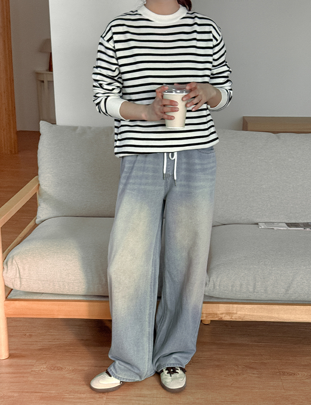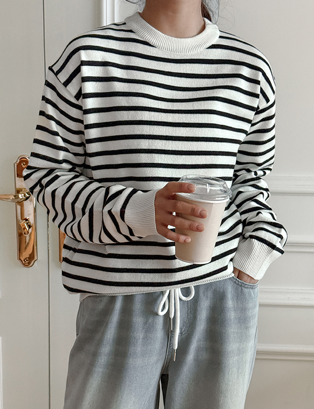 [남여공용] 레버 條紋 圓領 針織 86165