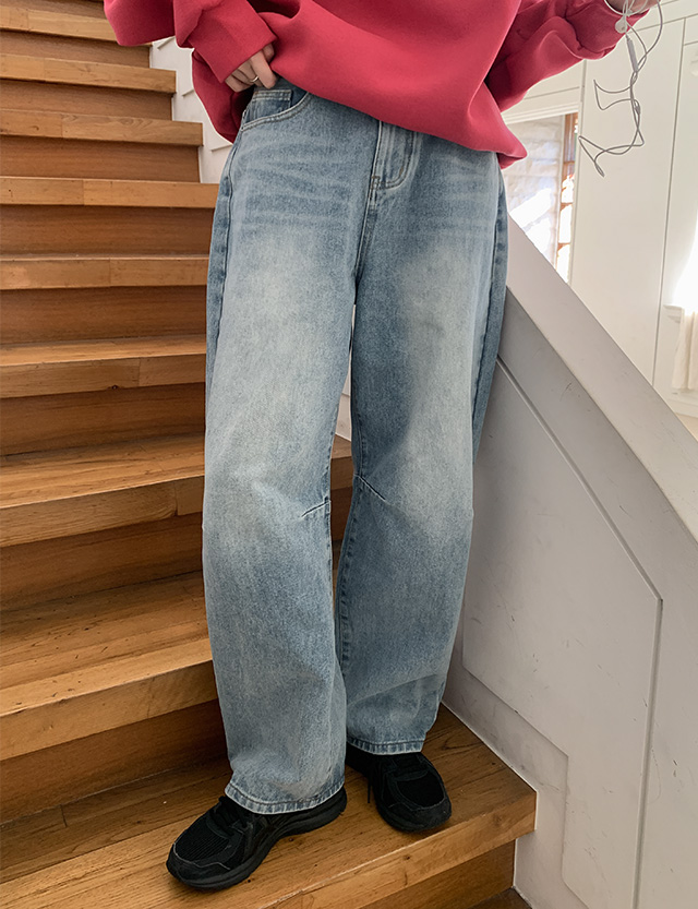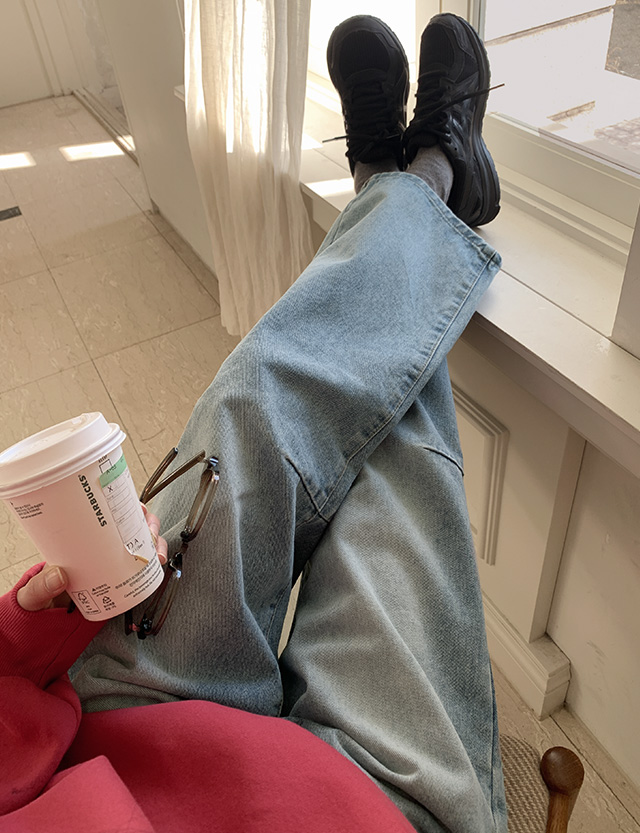 [2가지기장] 네브 무릎 다트 關鍵點 寬 牛仔褲 86056