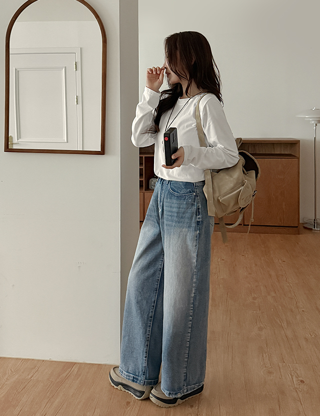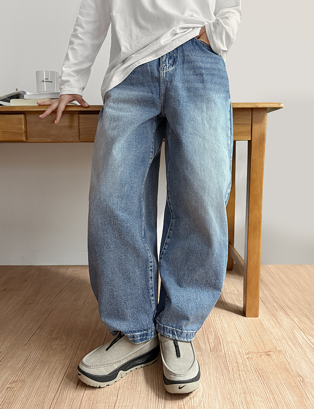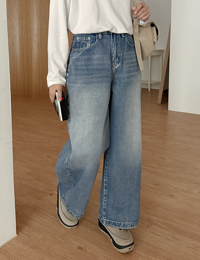 [3가지기장] 시카드 속밴딩 2WAY 寬 牛仔 褲 86255