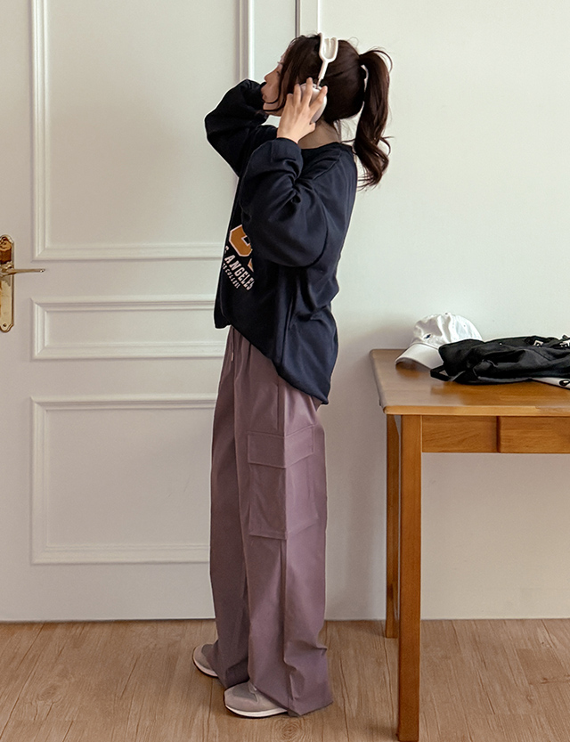파로브 顏色 鬆緊腰 寬 工裝褲 褲 86159