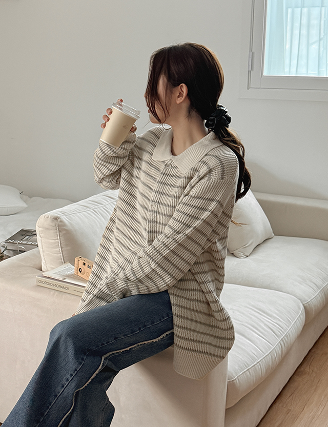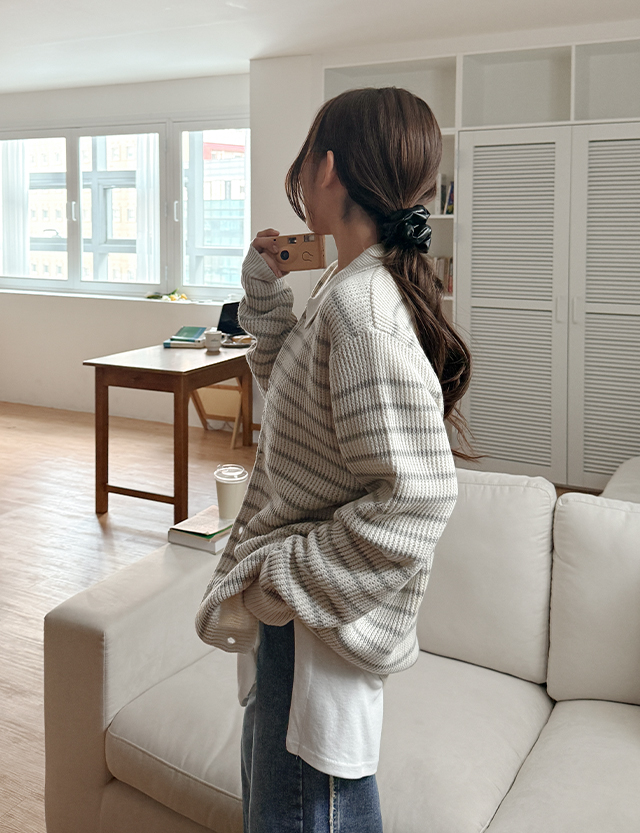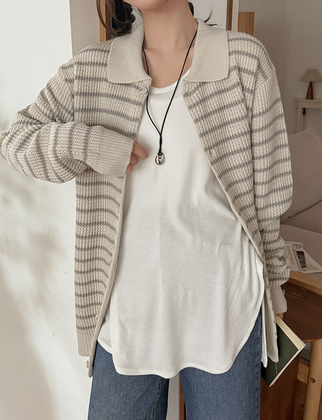 모렌 條紋 領口 針織 開襟外套 86259