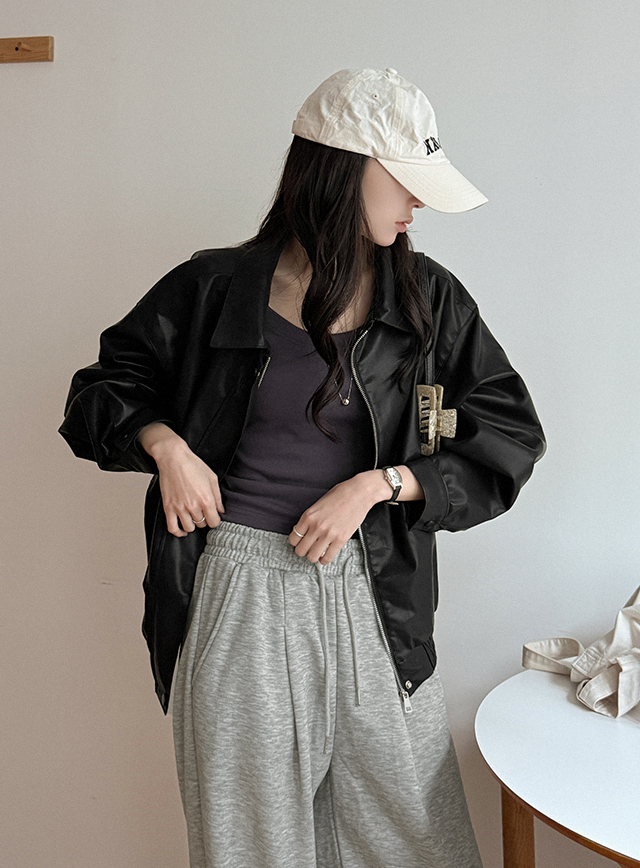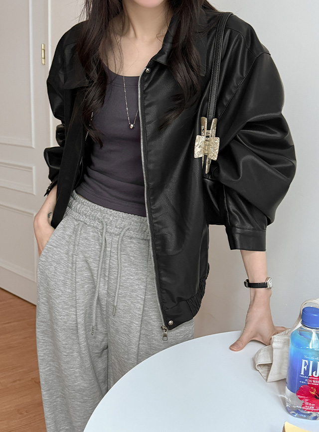 日間款藍色皮夾克 86291