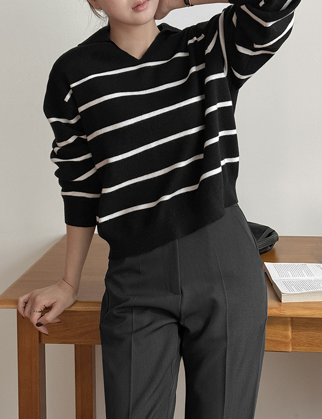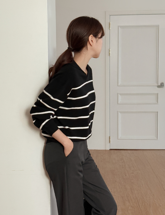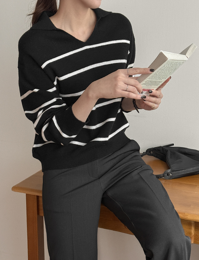 헬르디 條紋 領口 針織 86277