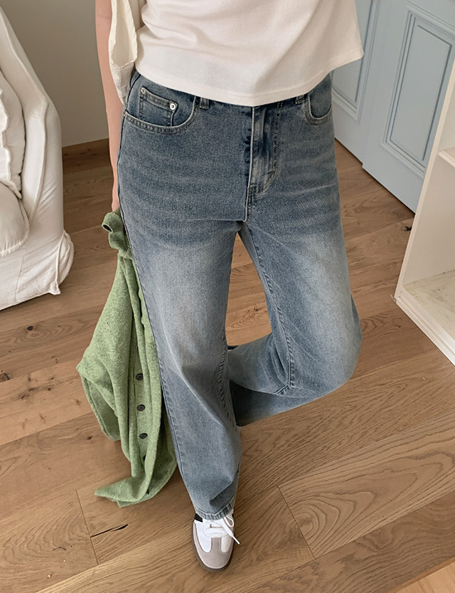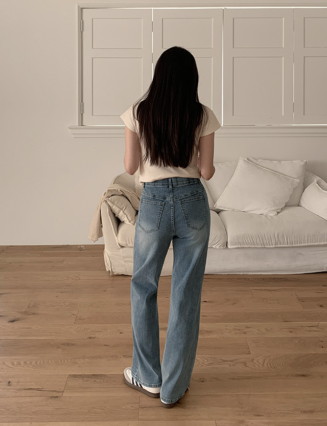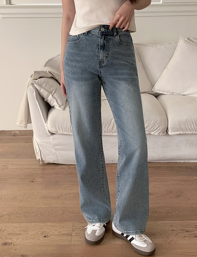 편안한 彈力 鬆緊腰 스트레이트 牛仔 褲 86173