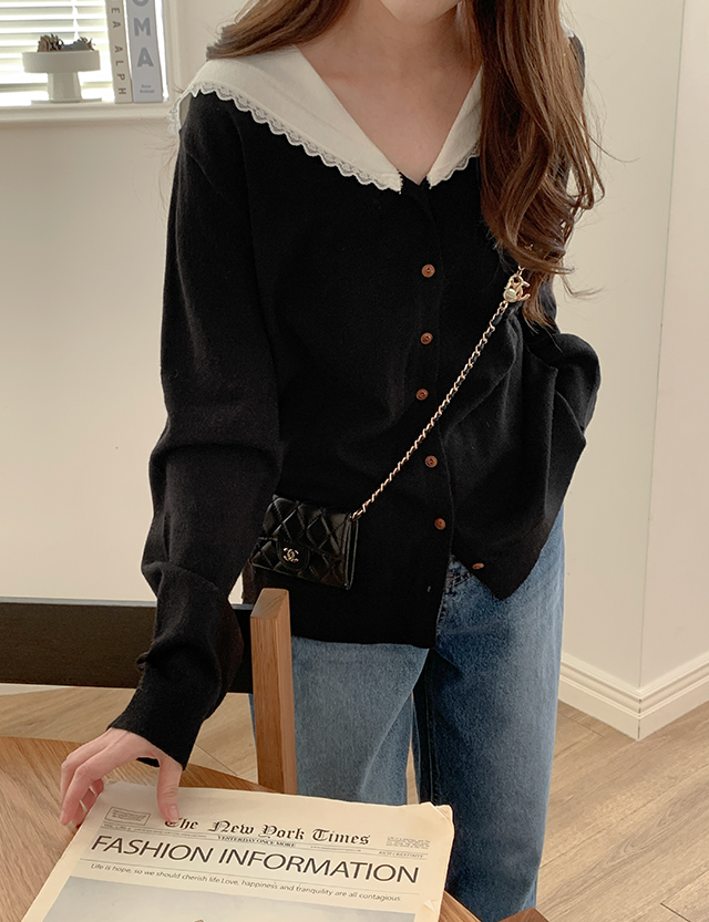 [09초이스] 러브데이 V領 蕾絲 領口 針織 開襟外套 86307