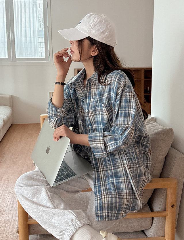[컬러기획] 투카스 格紋 寬鬆 襯衫 86252