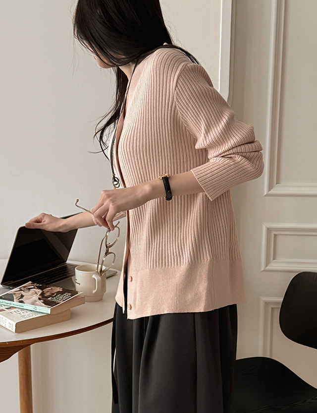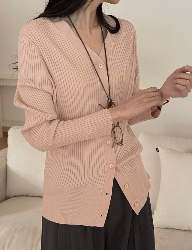 피치스 柔絲 羅紋 V領 針織 開襟外套 86334