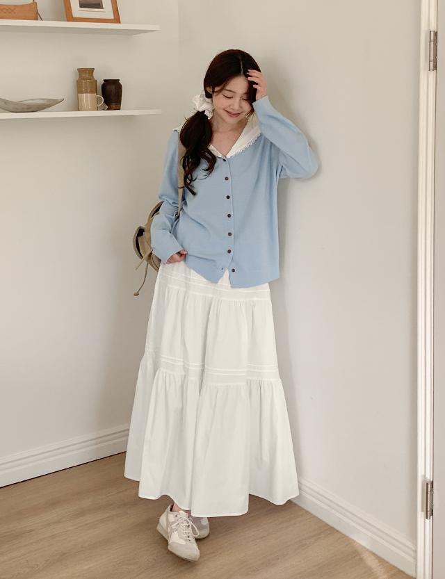 [09초이스] 러브데이 V領 蕾絲 領口 針織 開襟外套 86307