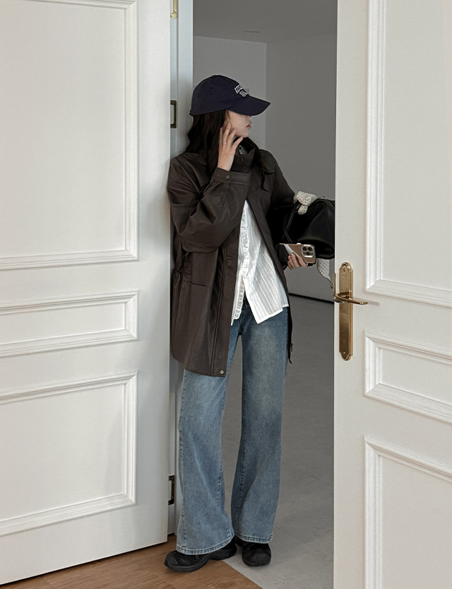메이니 綁帶 短版 레더 外套 86286