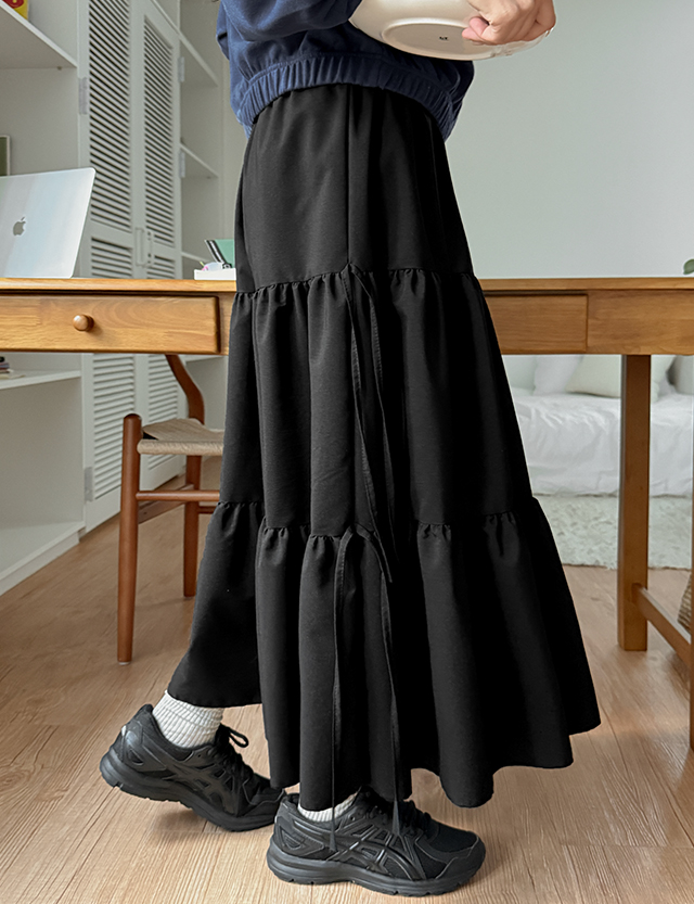 카스테 리본스트랩 荷葉裙 鬆緊腰 長裙 86262