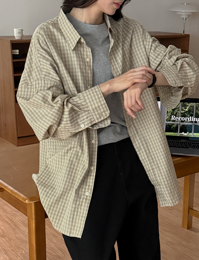비슬리 긱시크 寬鬆 格紋 襯衫 86232
