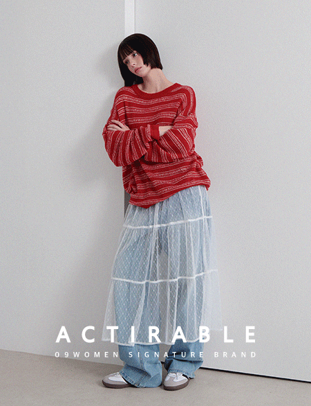 쏘러블리 分層 鬆緊腰 미디 裙 86465