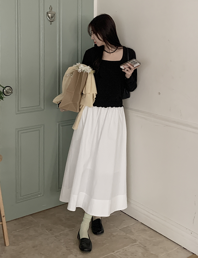 청순퐁당 鬆緊腰 波浪群/喇叭裙 長裙 86395