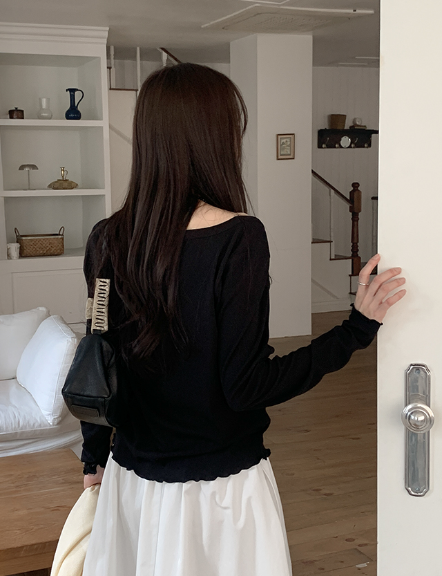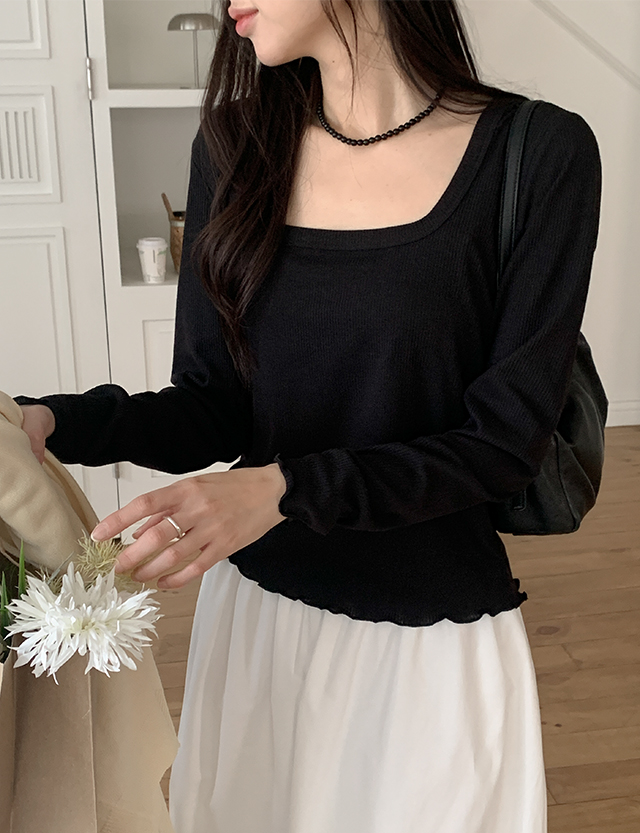슈플레 方領 羅紋 세미크롭 T恤 86403
