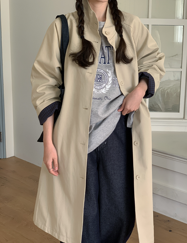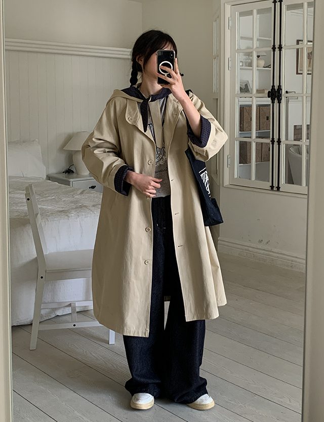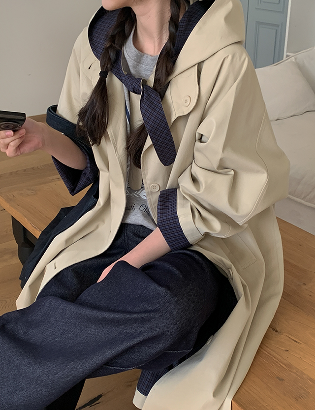 [모자세트] 프리티 格紋 配色 風衣 呢子大衣 86193