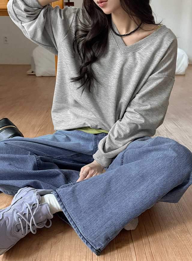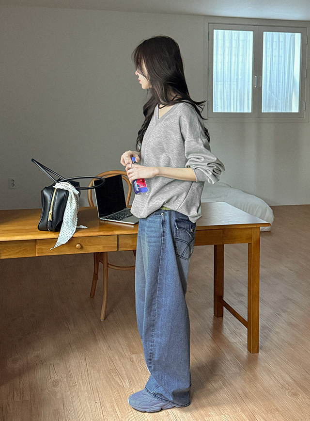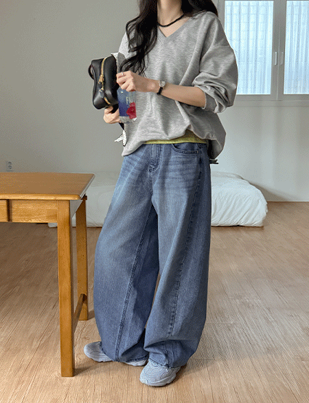 모아 포켓 縫線 커브 寬 牛仔褲 86302