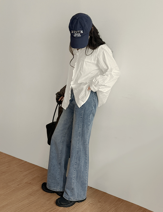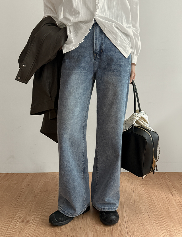 [2가지기장] 아일 寬 喇叭 절개 牛仔 褲 86290