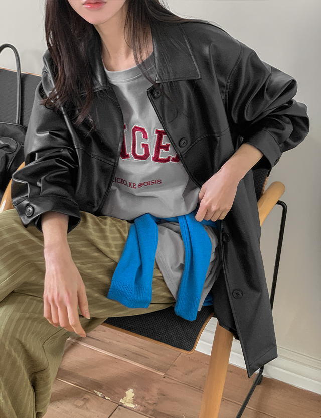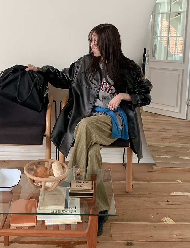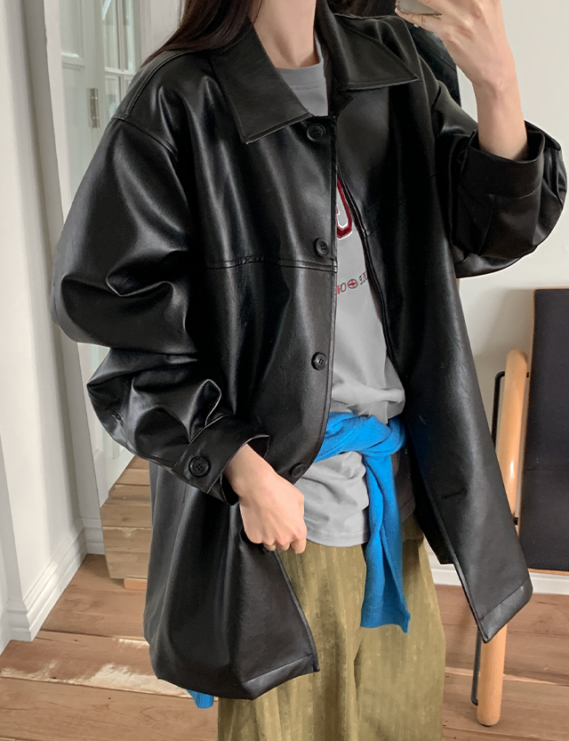 텐더 寬鬆 비건 레더 短版 外套 86453