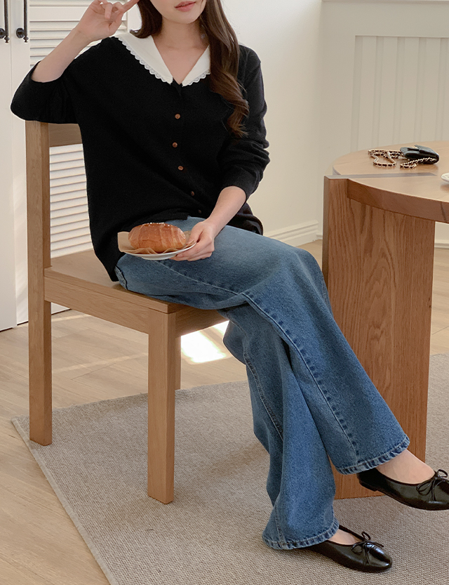 [09초이스] 러브데이 V領 蕾絲 領口 針織 開襟外套 86307