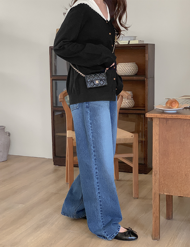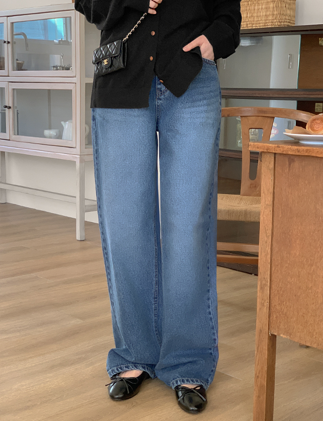 데이븐 簡單 水洗 寬 牛仔 褲 86321