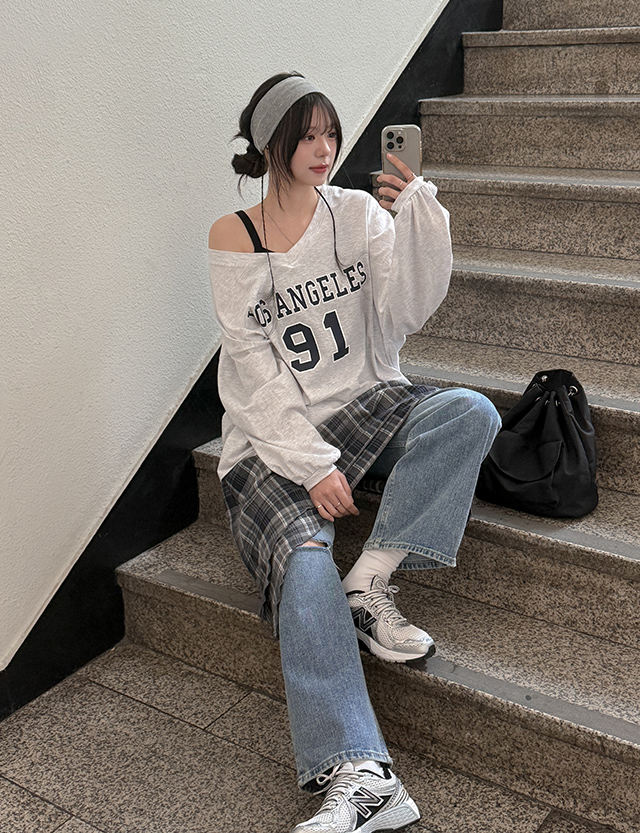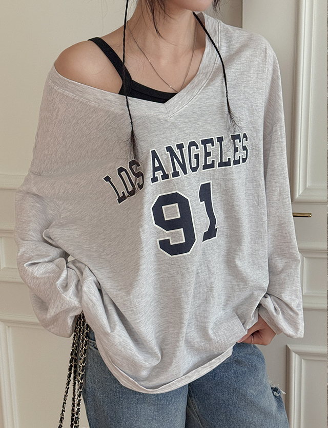 샐랜 字母印花 V領 長袖 運動衫 86391