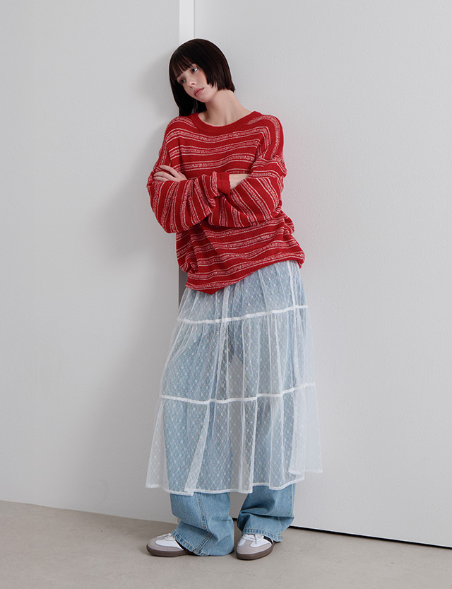 쏘러블리 分層 鬆緊腰 미디 裙 86465
