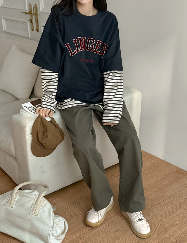 스렌 條紋 寬鬆 長袖 T恤 86331