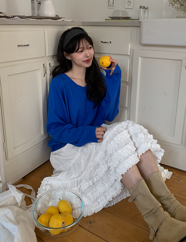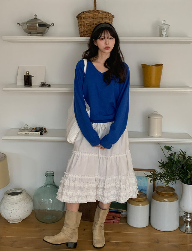 구루밍 綁帶 層褶裙 미디 裙 86547