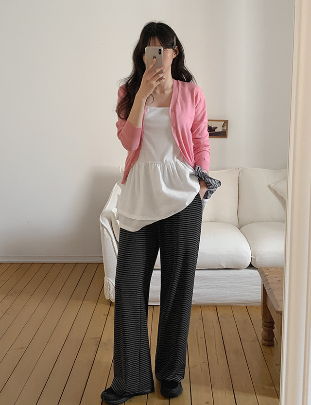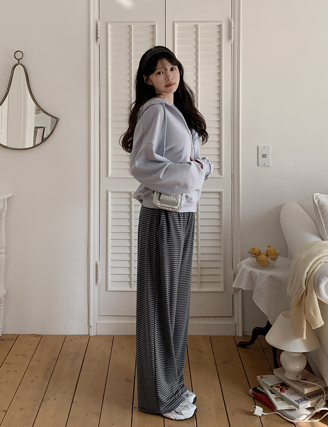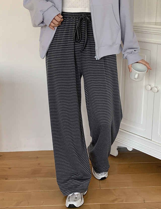 온앤온 條紋 寬 鬆緊腰 褲 86538