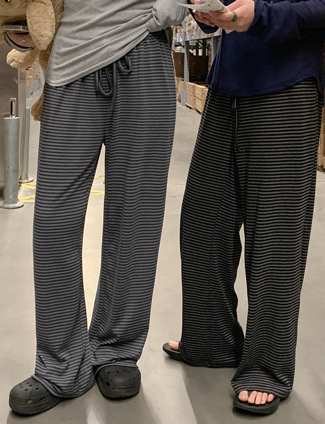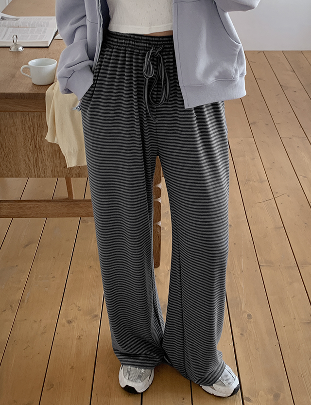 온앤온 條紋 寬 鬆緊腰 褲 86538