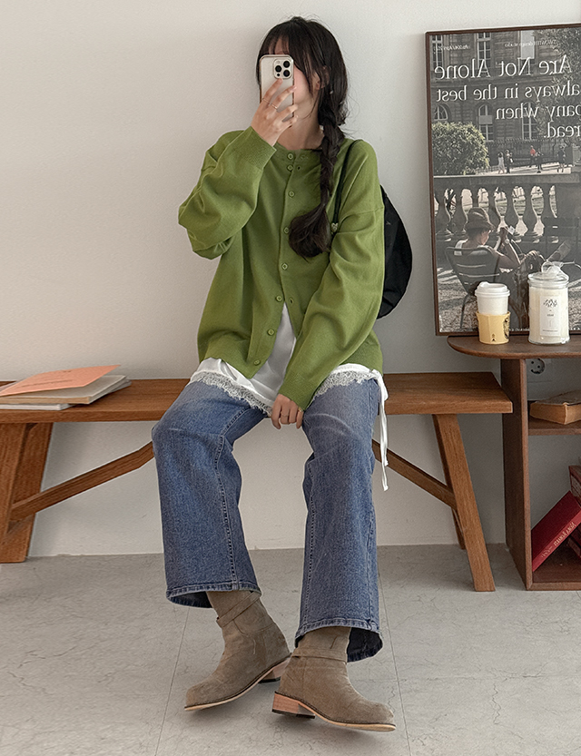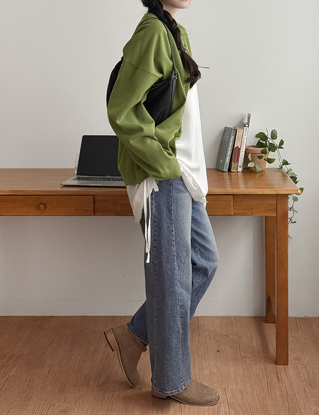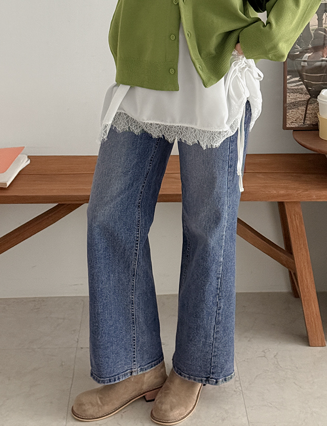 일레브 속밴딩 사선절개 寬 直筒 牛仔 褲 86377