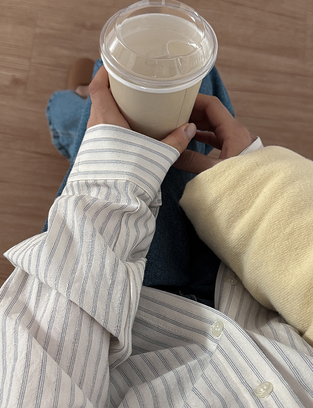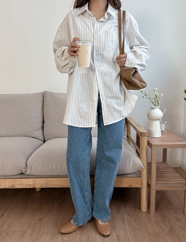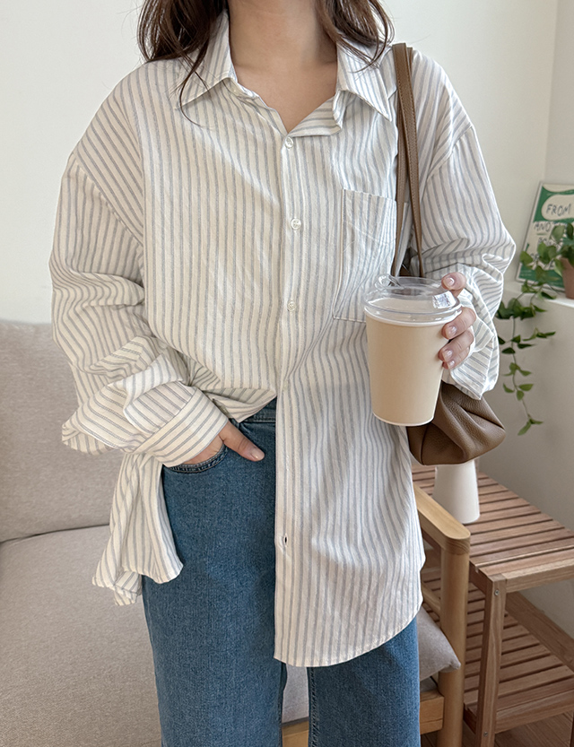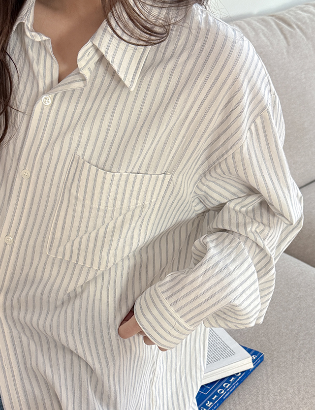 더시티 條紋 포켓 寬鬆 襯衫 86428