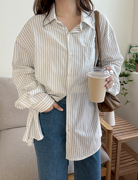 더시티 條紋 포켓 寬鬆 襯衫 86428