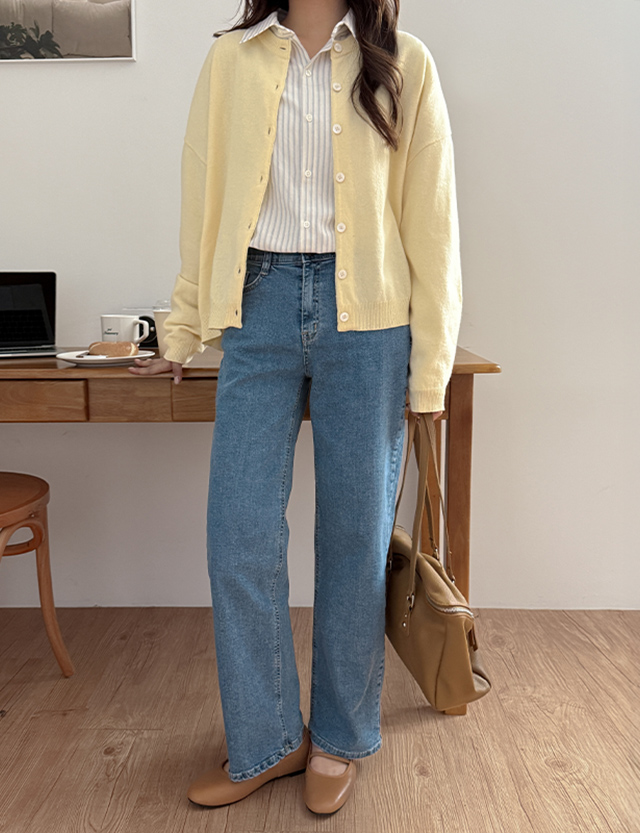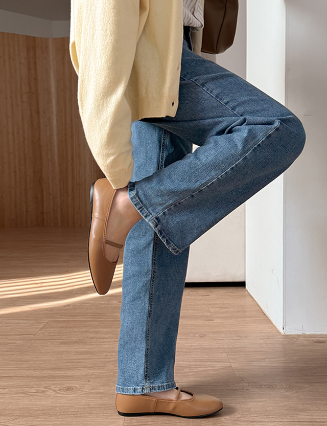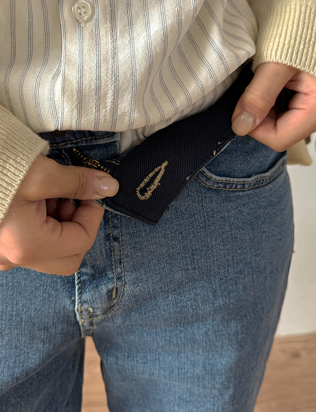 라피 鬆緊腰 세미와이드 牛仔 褲 86429
