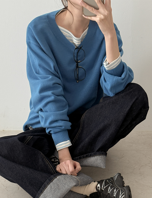 블루코어 논페이드 牛仔 寬 鬆緊腰 褲 86507