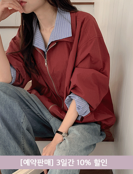로데 寬鬆 條紋 配色 分層 拉鏈外套 86284