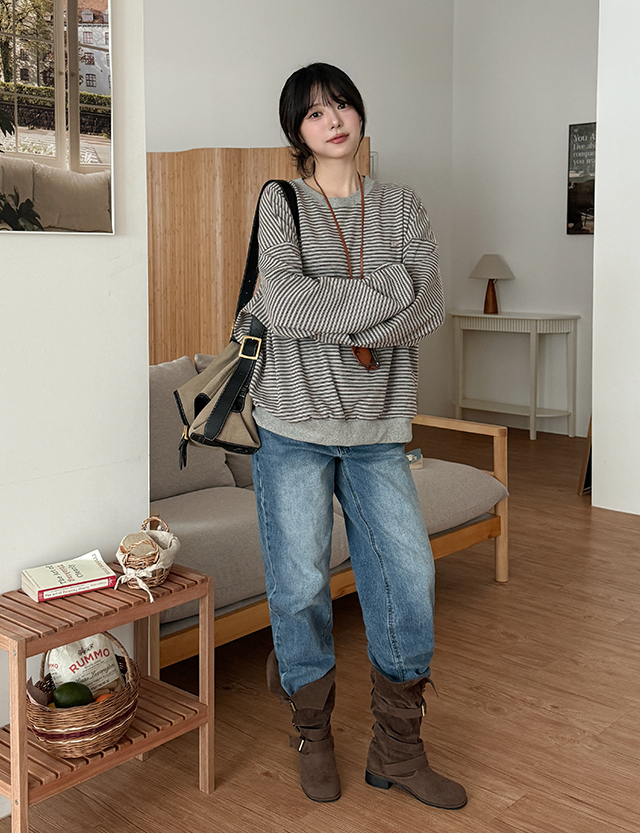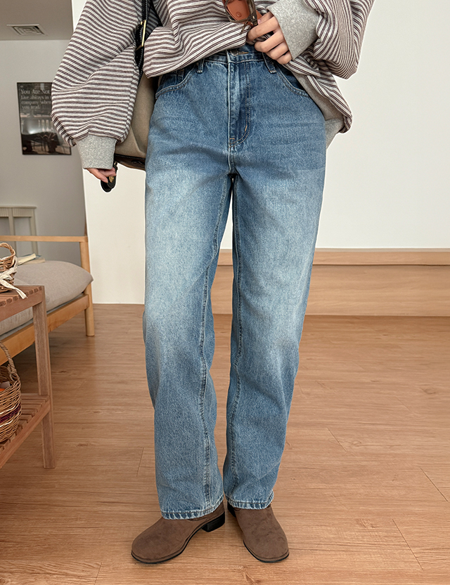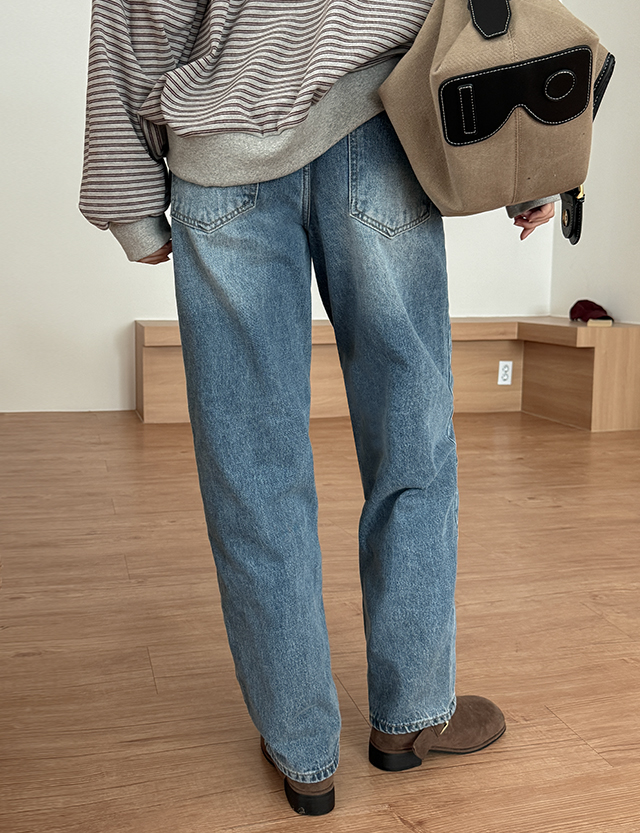[3가지기장] 로이트 속밴딩 테이퍼드 水洗 牛仔 褲 86603