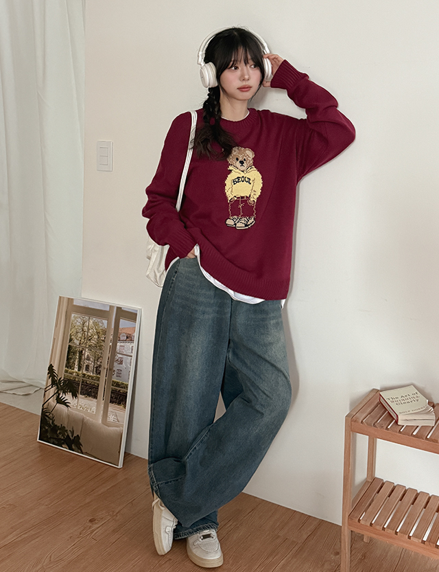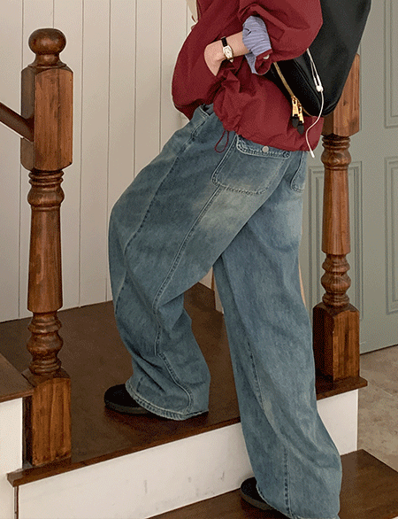 [09초이스] 완전 편해 포켓 절개 鬆緊腰 寬 牛仔 褲 86398