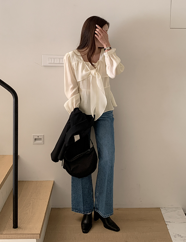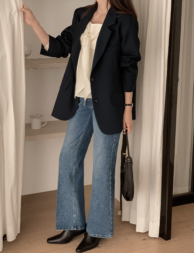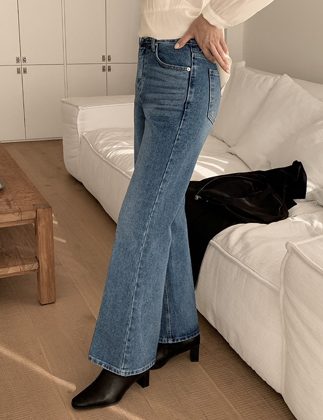 슬림하게 레직기 鬆緊腰 세미 喇叭 牛仔 褲 86525