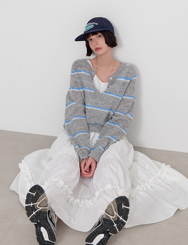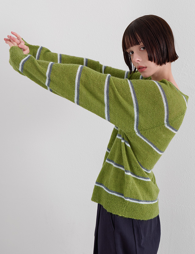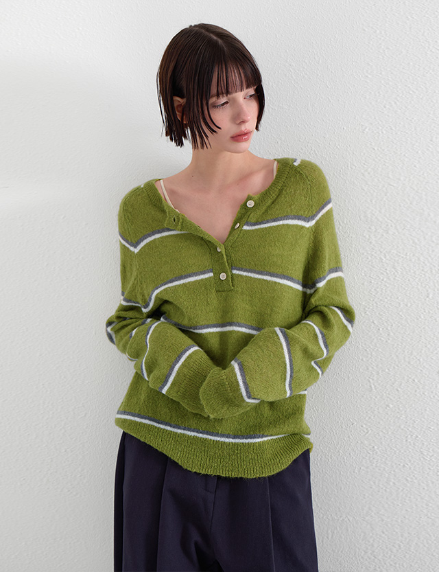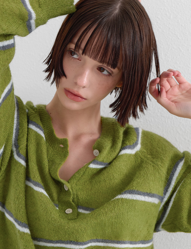 말차맛 條紋 鈕扣 針織 86620