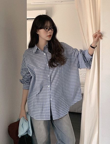 [09초이스] 포에티 寬鬆 格紋 襯衫 86415