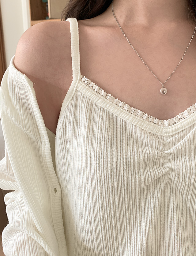 이브티 蕾絲 波浪群/喇叭裙 背心 開襟外套 套裝 86579
