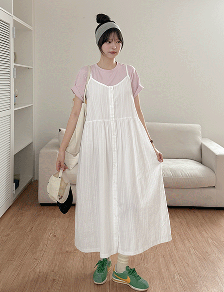 슈렌 鬆緊腰 뷔스티에 分層 長款 洋裝 86605