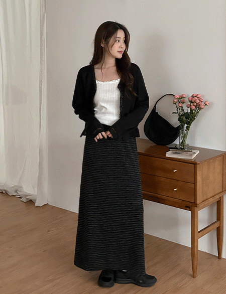 덴쿠 鬆緊腰 條紋 長裙 86583